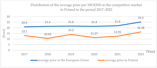 Distribution of the average price per 100 KWh in the competitive market in Poland in the period 2017–2022.