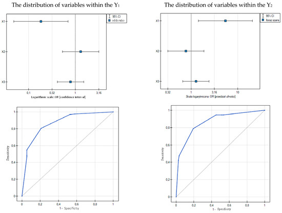 Studies indicate that the highest probability of occurrence refers to the variable X1 (selection of photovoltaic installations, strengthening Poland’s energy system) within category Y2 (odds ratio: 5.4698), although the OR for Y1 is extremely low.