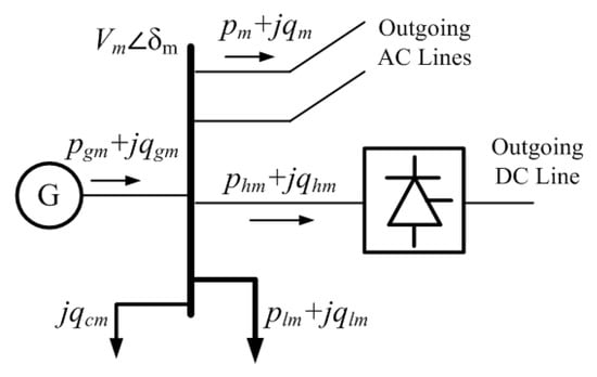 Figure 4 illustrates the representation of AC bus m with the HVDC link. From the figure, it can be observed that the set of equality constraints in terms of the active and reactive power balance equations can be derived as follows: