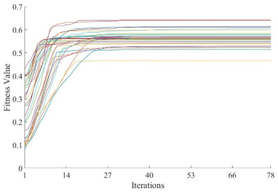 Variation in fitness values with the number of iterations. Different colored lines indicate different comfort levels, varying with the number of iterations.