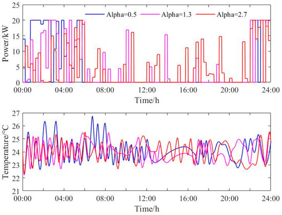 Optimized regulation results of regenerative electric heating for different user preferences (Day = 1).