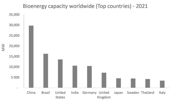 Bioenergy capacity worldwide. Source: Adapted from Duarah et al. [14].