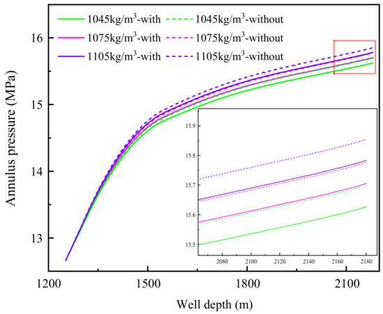 Annulus pressure curves under different drilling fluid densities.