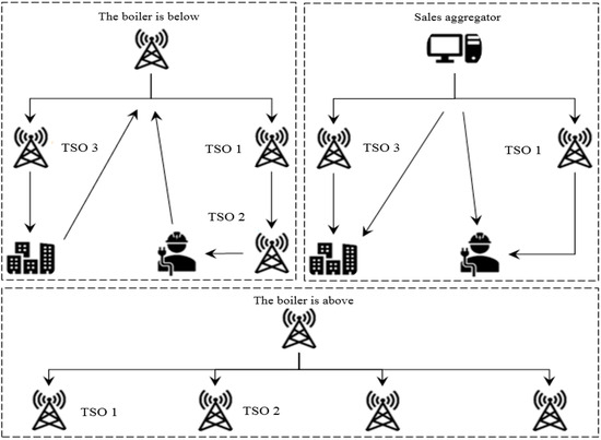 The “boiler” model of mutual settlements through three variations is shown in Figure 1 (TSO (1, 2, 3) is a territorial network organization).