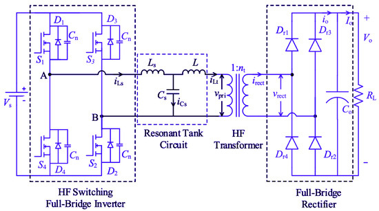 - Chen, H.; Bhat, A.K.S. A bidirectional dual-bridge LCL-type series resonant converter controlled with modified gating scheme. In Proceedings of the IEEE 8th International Power Electronics and Motion Control Conference (IPEMC-ECCE Asia), Hefei, China, 22–26 May 2016; pp. 3036–3042. [Google Scholar] [CrossRef]