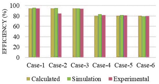 - The theoretical calculations assumed 1% power loss for the utilized transformer, while in prototype testing, the copper loss changes according to load, and the core losses remain constant.