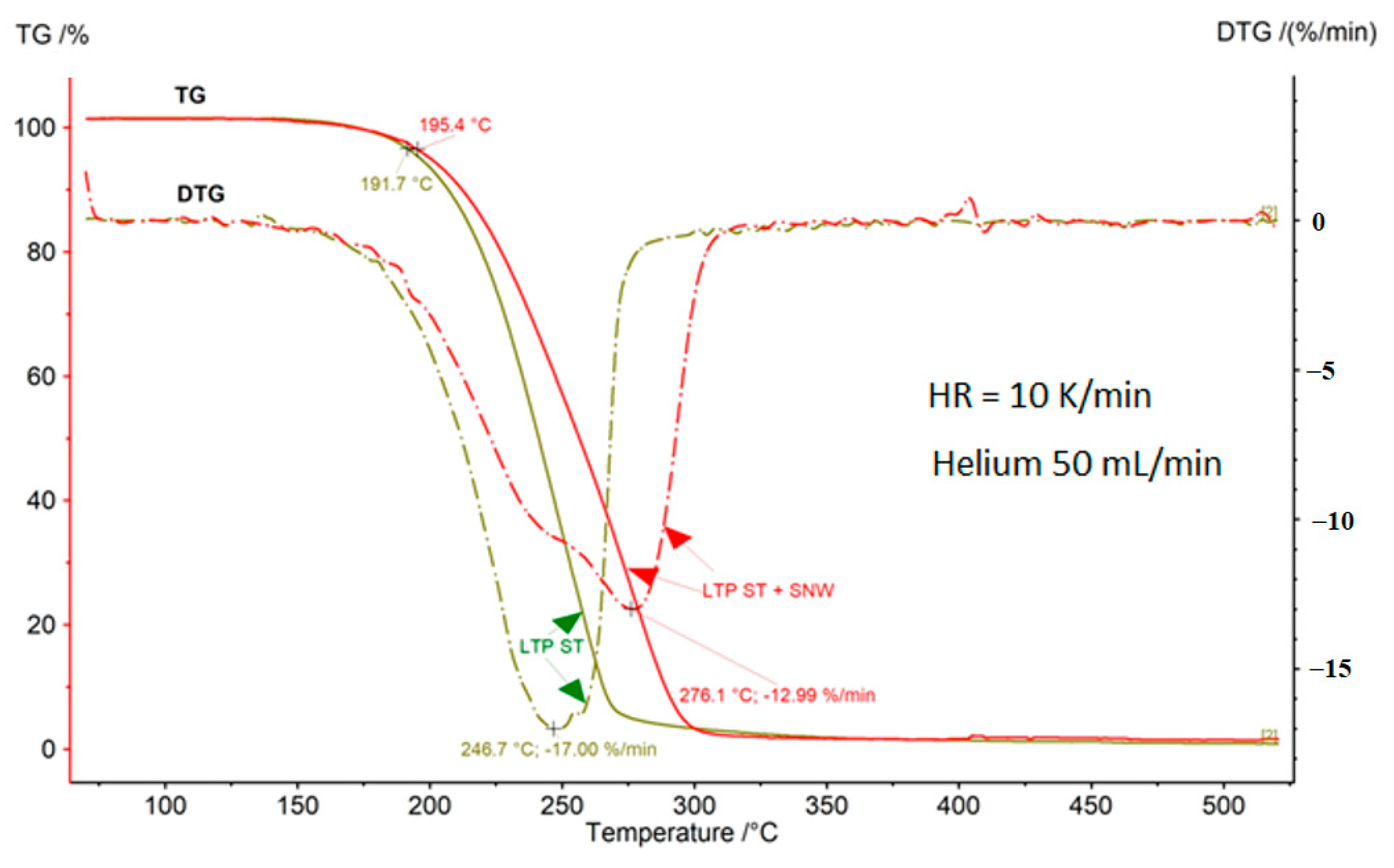 - There is probably a stronger interaction of SNW with paraffin particles, which leads to the creation of stronger interparticle bonds and facilitates heat transport in the composite;