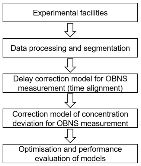 (1) Delay identification models for the OBNS measurement and deviation correction models for concentration were constructed based on different classification and regression algorithms, respectively. The computation results demonstrate that the delay identification model based on the multilayer perceptron algorithm achieved the highest prediction accuracy, while the deviation correction model based on the random forest regression algorithm performed the best.