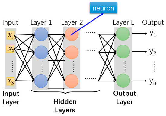 MLP is a feedforward artificial neural network commonly used for classification and regression problems [27]. Meanwhile, MLP has become a valuable tool in machine learning with the advantages of modelling nonlinear relationships, automatically extracting meaningful features, analysing feature weights, and reducing data dimensions [24,25]. Figure 6 depicts the basic structure of an MLP, which consists of at least three layers: input, hidden, and output. The core idea of the MLP is to construct a multilayer neural network, where each layer consists of nodes with weighted connections. The input layer receives data and passes it through the network, the hidden layers perform weighted processing of the signals using activation functions, and the output layer generates results. Then, the backpropagation algorithm of an MLP is used to train the model, which propagates the error from the output layer back to the hidden layers and input layer. This process is iterated for a certain number of iterations until the error reaches an acceptable level.