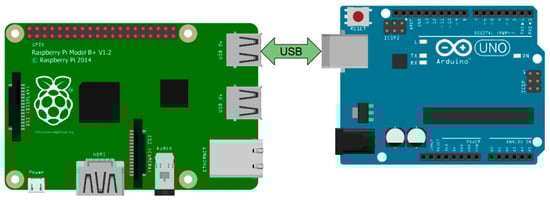 23]. Communication between a Raspberry Pi and an Arduino Uno is a popular and straightforward method to exchange data between the two devices. The Raspberry Pi, running a Linux-based operating system, communicates with the Arduino Uno, which uses an Atmel microcontroller over a UART (Universal Asynchronous Receiver/Transmitter) serial interface.