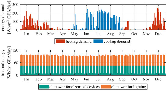 - DIN V 18599 (2007-02); Energetische Bewertung von Gebäuden—Berechnung des Nutz-, End- und Primärenergiebedarfs für Heizung, Kühlung, Lüftung, Trinkwarmwasser und Beleuchtung. Beuth Verlag: Berlin, Germany, 2007.