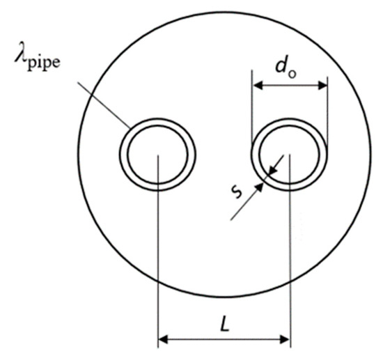 Another parameter on which heat transfer efficiency greatly depends is pipe spacing [8], given that the thermal interference between two branch pipes is determined by this distance [14]. In real situations, spacing is not constant throughout the borehole depth, and its value cannot be fully assured, but thermally enhanced grout can compensate for the negative effect of insufficient pipe spacing [15].