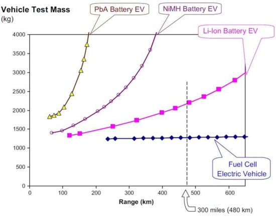 - Fuel cell hybrid vehicles: the drawbacks of the previous kind of vehicle could be addressed by an onboard integration of energy storage systems (batteries and/or supercapacitors) [16,31]. In this hybrid configuration, the power baseline request is guaranteed by the fuel cell, while all other energy demand (adjusting the dynamic response, peak power demand, starting off, etc.) is given by the electrical energy storage system, which can be charged and discharged based on the power demand and supply. This layout allows the fuel cell to operate at its maximum efficiency [32]. Experimental models are provided with other energy accumulators [33].