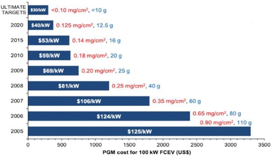 | Non-precious metal catalyst | Potentially offer the largest benefits (significant cost reduction); | Close to meeting targets for non-automotive applications but far from automotive targets; |