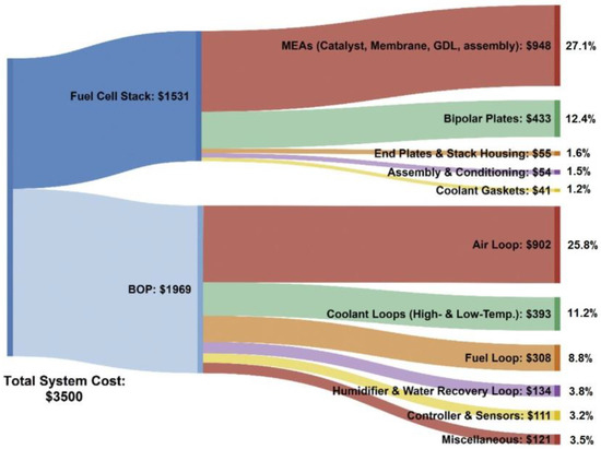 - James, B.; Juya-Kouadio, J.; Houchins, C. Fuel Cell Systems Analysis. DOE Hydrogen and Fuel Cells Program Review FC163. 2017. Available online: https://www.hydrogen.energy.gov/pdfs/review17//fc163_james_2017_o.pdf (accessed on 24 July 2023).