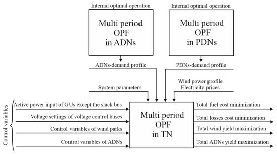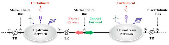 The urgency of building a sustainable future and establishing a global sustainable energy system highlights the critical importance of fostering strong collaboration between transmission system operators (TSOs) and distribution system operators (DSOs) [1,2,3,4,5,6]. TSOs and DSOs working together are vital for effectively managing and integrating renewable energy sources and storage systems, ensuring grid stability, and meeting the energy demands of a rapidly evolving world. Recent studies [7] have demonstrated the potential of incorporating storage systems such as battery storage systems (BSSs) [8] and considering their role in conjunction with TSO-DSO coordination models [9]. This can lead to effective leveraging of distributed energy resources, enhanced grid stability, and optimal utilization of sustainable resources.