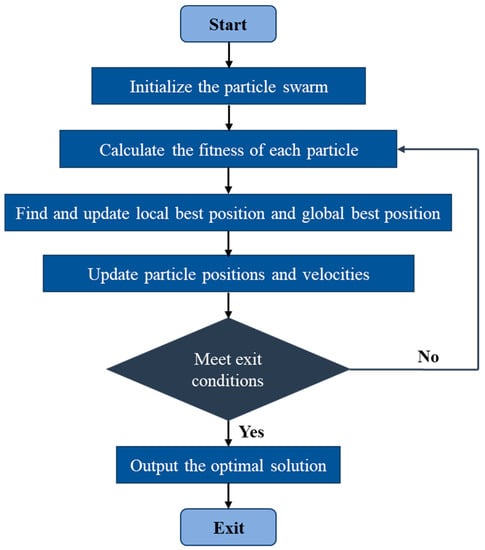 Figure 2 shows the flow of the PSO algorithm, where each particle individually searches for the optimal solution in the search space. The optimal solution is recorded as the current individual extremum and shared with the other particles in the entire particle population. The particles move at a certain speed in the search space, wherein they dynamically adjust their respective speed and position according to their own flight experience and the flight experience of other particles [].