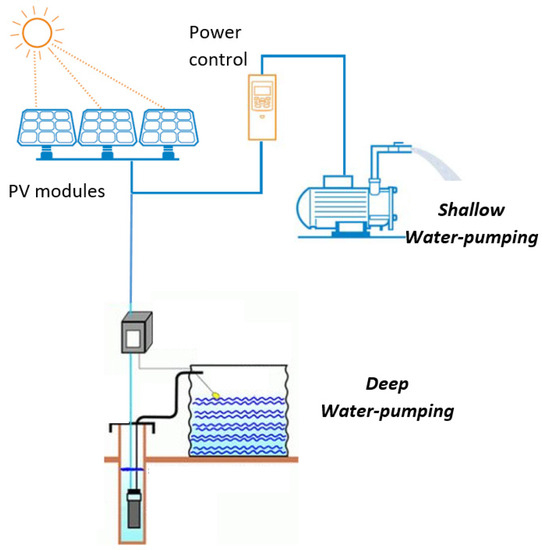 - Gao, X.; Liu, J.; Zhang, J.; Yan, J.; Bao, S.; Xu, H.; Qin, T. Feasibility evaluation of solar photovoltaic pumping irrigation system based on analysis of dynamic variation of groundwater table. Appl. Energy 2013, 105, 182–193. [Google Scholar] [CrossRef]