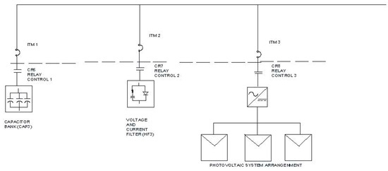 Once the case studies shown above were developed, a table (Table 3) was created to integrate the results for each case. The table demonstrates that better results are obtained when the automation is integrated by energizing only the capacitor bank (CAP3). Additionally, better control is achieved in the electrical system when the photovoltaic system is energized together with the voltage and current filter.