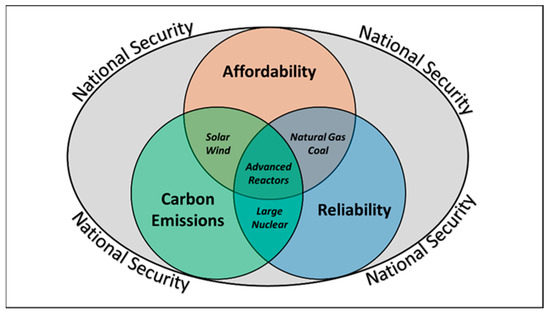Within the market space, social and political efforts are reframing the energy policy debate to focus on climate change and low carbon emissions, as amplified by President Biden’s elevation of climate change to the center of U.S. foreign policy and national security [109]. To that end, current efforts to keep economically challenged large nuclear plants operating are primarily for meeting carbon emission targets and climate objectives while maintaining grid reliability [110]. Existing nuclear power, then, is not excluded altogether from this reframing, nor is advanced nuclear power, as evidenced by the Advanced Reactor Demonstration Program (ARDP) discussed previously. However, commoditizing nuclear power, particularly advanced nuclear power, as a market commodity to compete with coal, oil, natural gas, solar, and wind while continuing to use LCOE as the dominant metric for selecting across these technologies is problematic for the long-term prospects of nuclear. It dismisses the baseload and reliability value of nuclear and does not address fundamental structural issues constraining the potential deployment of advanced nuclear reactors.