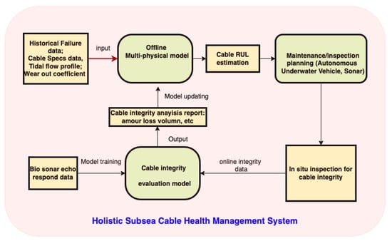 - Tang, W.; Flynn, D.; Brown, K.; Valentin, R.; Zhao, X. The Design of a Fusion Prognostic Model and Health Management System for Subsea Power Cables. In Proceedings of the OCEANS 2019 MTS/IEEE SEATTLE, Seattle, WA, USA, 27–31 October 2019; pp. 1–6. [Google Scholar] [CrossRef]