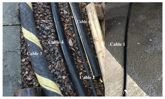 In our experiment, we obtained our cable samples from JDR Cable Systems Ltd and the European Marine Energy Centre (EMEC). Figure 4 shows the cable sample, which consists of subsections from 4 different subsea power cables, including decommissioned and healthy ones. The subsections of cables used in this experiment share similar lengths of 3 m, but varies in other physical characteristics, such as weight and diameter. In addition, the cables each have different physical properties as shown in Table 1.