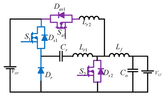 In many BDC applications, the soft-switching scheme is essential to increase the converter efficiency. Figure 7 shows a soft-switching buck and boost BDC [13], which comprises two main switches, S1 and S2; one auxiliary switch, Sa; three resonant components, Lr1, Lr2, and Cr; four diodes, DS1, DS2, DSa1, and Dr; and one filter inductor, Lf. In comparison with similar kinds of soft-switching topologies, the complexity of this converter is less. In this structure, the soft-switching action in both the buck and the boost modes is achieved by the auxiliary switch and resonant elements. So, the effective power transfer during buck and boost modes can be achieved. In each switching period, the auxiliary switch operates only once. Here, the filter inductor is considered as large enough to produce constant load current.