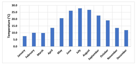 The average monthly temperature profile of the town of Cecchina for the year 2022 [18].
