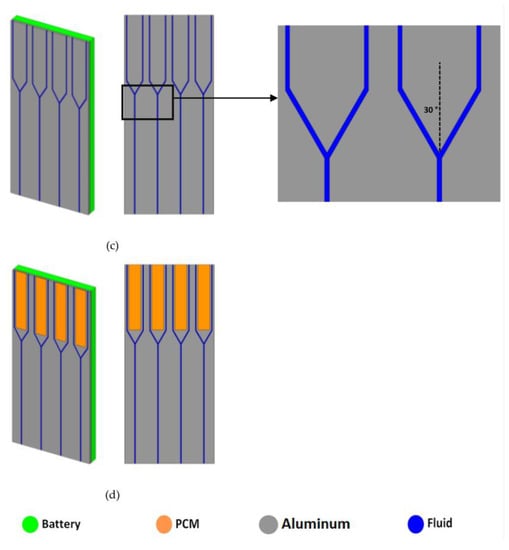 - Choudhari, V.G.; Dhoble, A.S.; Panchal, S.; Fowler, M.; Fraser, R. Numerical Investigation on Thermal Behaviour of 5 × 5 Cell Configured Battery Pack Using Phase Change Material and Fin Structure Layout. J. Energy Storage 2021, 43, 103234. [Google Scholar] [CrossRef]