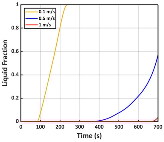 PCM liquid fraction in various coolant inlet velocities.