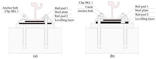 Cross section of direct (a) and indirect (b) fastening systems characteristic of tram track infrastructure in the city of Zagreb.