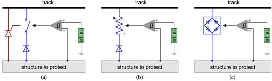 - Mariscotti, A. Electrical Safety and Stray Current Protection With Platform Screen Doors in DC Rapid Transit. IEEE Trans. Transp. Electrif. 2021, 7, 1724–1732. [Google Scholar] [CrossRef]