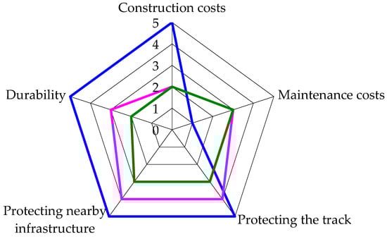 The isolation level between the ground and the rails is required to be above the minimum criteria of 10 km for the tunnel and 2 km for the open area of a single-track section under normal operating conditions (which is not different from the prescribed limits in the EN 50122-2 [34], also using the same expression of “over system’s life”). The target value for a newly commissioned track is 100 km, providing a minimum tenfold margin on the hard limits.