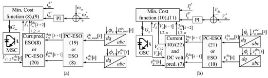 Control block diagram of ESO MPC framework: (a) machine-side; (b) grid-side.