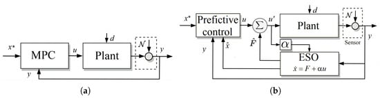 Control block diagram: (a) classical MPC; (b) ESO-based MPC.