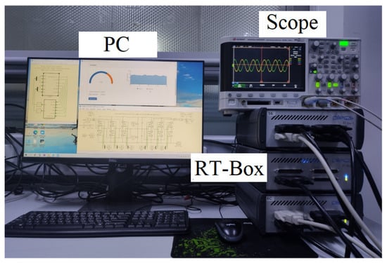 In this section, the results for the real-time hardware-in-the-loop (HiL) validation (test bench shown in Figure 6) of the control performance of the proposed MFPCC-PCESO are presented and discussed. The parameters of the test system are shown in Table 1. Classical MPC in [23] and MPC-ESO are compared with the proposed method. The weight factors of the three methods of MPC are the same, namely: , , , , . The measurement noise of the sensor is represented by Gaussian white noise with a standard deviation of , which is added to the measured stator and grid currents (in domain).