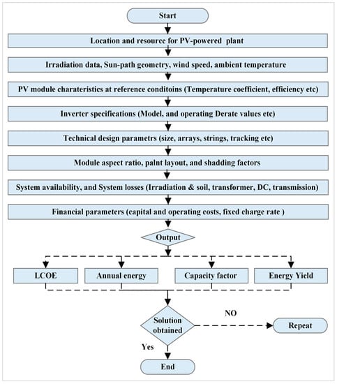 The simulation encompasses a range of pathways derived from the combination of three different module configurations and two module types. Through comprehensive enumeration, a total of six pathways were examined in Figure 2. The findings were obtained through open-access simulation tools, the System Advisor Model (SAM.V22.11.21) [38] and a spreadsheet analyzer.