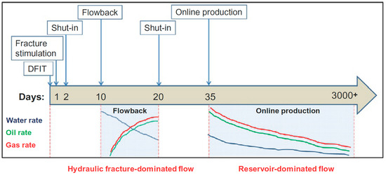 - Clarkson, C.R.; Williams-Kovacs, J.D. A New Method for Modeling Multi-Phase Flowback of Multi-Fractured Horizontal Tight Oil Wells to Determine Hydraulic Fracture Properties. In Proceedings of the SPE Annual Technical Conference and Exhibition, New Orleans, LA, USA, 30 September 2013. [Google Scholar]