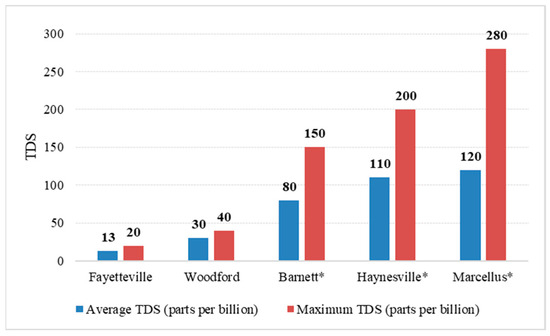 - Salinity of the Flowback Water from Selected U.S. Shales Expressed in Concentration of Total Suspended Solids (TDS) as of 2011. Available online: https://www.statista.com/statistics/250408/flowback-water-salinity-from-different-us-shales-by-tds-concentration/ (accessed on 25 April 2022).
