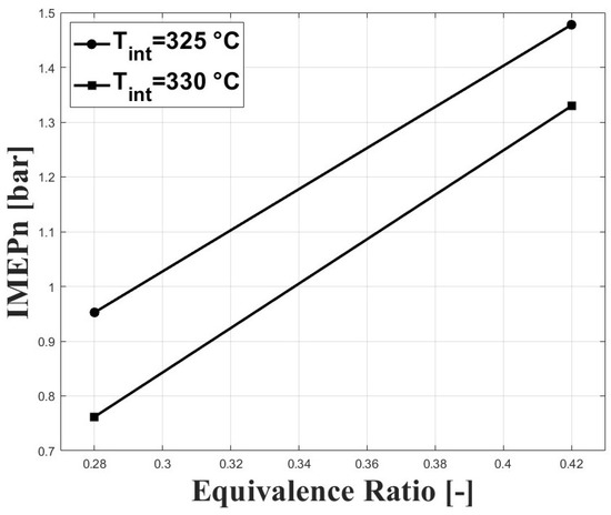 IMEPn at different conditions of equivalence ratio and intake temperature; P bar.