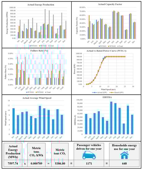The framework proposed in this study was applied to a renewable energy project involving a wind farm to illustrate the proposed data-driven decision-making process. The examined wind farm is located in the Greek Interconnected Island System and comprises two wind turbines. Each turbine has a power capacity of 900 kW, resulting in a total installed capacity of 1.8 MW for the wind farm. Each wind turbine is connected to the medium voltage network of the wind farm through a 1000 kVA, 0.7/15 kV transformer. The medium voltage electrical network of the wind farm consists of a single radial underground line, terminating in a medium voltage coupling substation situated within the control building installed inside the wind park. The wind park’s power is injected into the local 15 kV distribution network. The interconnection network between the control building and the existing local distribution network spans approximately 30 m. Data transmission, including various wind turbine parameters, such as wind speed and direction, is implemented through the underground communication network (fiber optic cables) connected to the SCADA system (located at the control building).