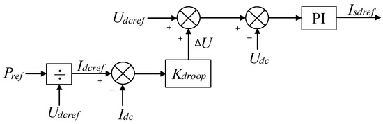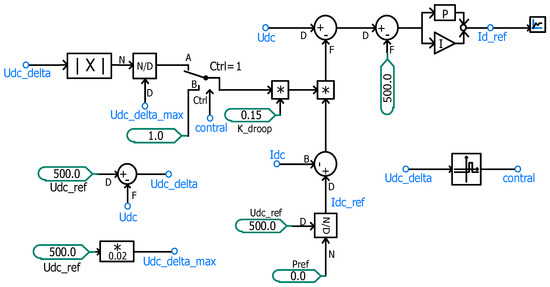 where and are the actual DC voltage of the converter station and its reference value, respectively, and are the actual DC current of the converter station and its reference value, respectively, and is the droop factor. The voltage droop controller is shown in Figure 4.