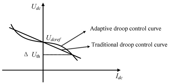 where is the difference between the DC voltage reference value and the actual value, and is the voltage deviation threshold set according to the system operation. Then, the newly formed adaptive droop control U-I relationship equation is