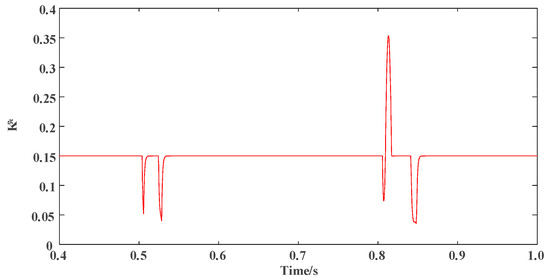 The hysteresis controller threshold is set to 2 kV, and the droop factor is kept constant when the absolute value of voltage deviation ; is set to 10 kV, which is used as the dividing line to design the changeover switch and correct the droop factor, decreasing the droop factor when and increasing it when .