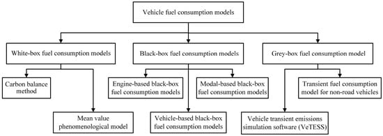 The work in [36] considers the advantages and limitations of three groups of fuel consumption models: white box, gray box, and black box (Figure 1).
