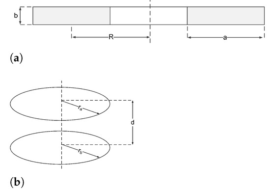 Figure 4a depicts a cross-sectional view of a single conductor loop. The self-inductance can be calculated using the formula provided in [13], as shown in (14), where a is the radial depth of the conductor, b is the axial length of the conductor, and R is the average radius of the winding. Additionally, the Geometric Mean Distance (GMD) can be determined using Equation (15).