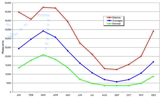 Average monthly flows of Madeira River at Porto Velho. Adapted from [10].
