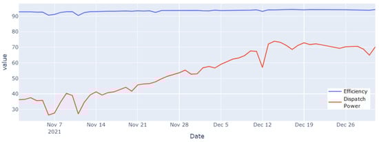 Monthly efficiency and dispatch power readings extracted from the dataset.