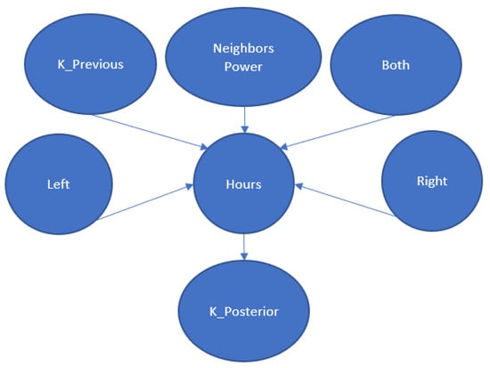 Furthermore, a BN-based approach is applied in [41] to predict wind power ramp events, employing an imprecise conditional probability estimation method. The proposed solution utilizes the maximum weight spanning tree, a greedy search method to fit the observed data with the highest degree, and a modified version of the Dirichlet model to estimate the network parameters. Given the meteorological conditions, the proposed solution is meant to detect the possibility of a random ramp event, quantifying the uncertainty of the event. The method’s effectiveness is demonstrated through tests using three-year operational data from a real wind farm.
