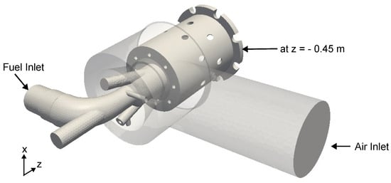 - Pashchenko, D. Hydrogen-rich fuel combustion in a swirling flame: CFD-modeling with experimental verification. Int. J. Hydrogen Energy 2020, 45, 19996–20003. [Google Scholar] [CrossRef]